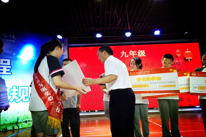 接下来,黄校长为在上学年期末考试中取得优异成绩的学生颁发校长奖学金,对他们取得的优异成绩表示祝贺,鼓励他们继续努力,实现自己的目标。