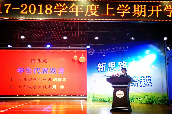 9月2日下午三点,优米娱乐app初中部开学典礼在二楼礼堂隆重举行。学校黄校长、学部从红主任、德育刘明刚主任、初中部全体师生及家长参加了此次典礼。担任本次典礼主持人的分别是九(1)班黄竣炜、八(1)班胡溪宇、八(1)班龚浩宇、八(2)班王书宁四位同学。