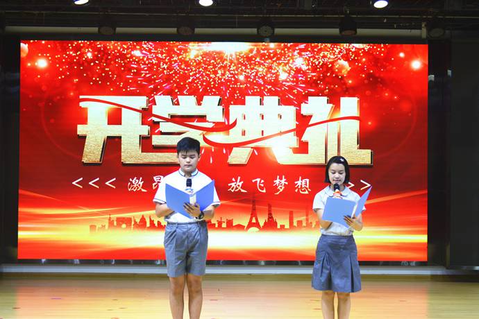 五星红旗迎风飘扬,魅力校园青春飞扬;我们继往开来激情追梦,我们放飞理想扬帆启航……伴随着雄壮嘹亮的国歌声,开学典礼正式拉开帷幕。