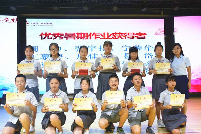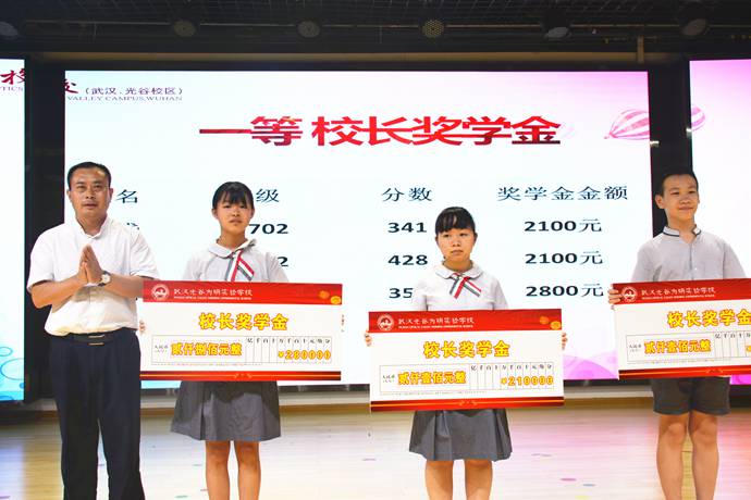 陈龙主任和肖丽主任先后宣读上学期荣获为明之星、优秀学生、优秀学生干部、优秀班集体,各班各科暑期作业综合优秀者名单并为学子们颁奖。王亚欣主任、王乐平主任、黄校长分别宣读荣获奖学金的学生名单并颁奖,将典礼推向高潮。