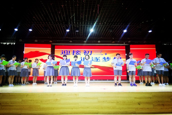 训练场上历练归来的七年级同学英姿飒爽,意气风发,向在场的师生及家长展示了他们的军训成果,赢得阵阵掌声;九年级全体同学更是以激情澎湃的热情为即将到来的初三生活呐喊助阵!有一种奋斗叫初三,青春的我们就要无惧风雨,披荆斩棘,一路高歌;既然选择了拼搏,就让我们奋然前行,不断向上,活出最好的模样!最后,本学期的开学典礼在同学们响亮的宣誓声中圆满结束!