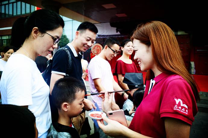 随后便是整个开笔礼最隆重的环节—朱砂启智。“痣”通“智”,意为开启智慧,以此寄托美好的愿望。校领导和老师们为新生点朱砂,祝愿孩子从此眼明心亮,读书好、好读书、读好书。
