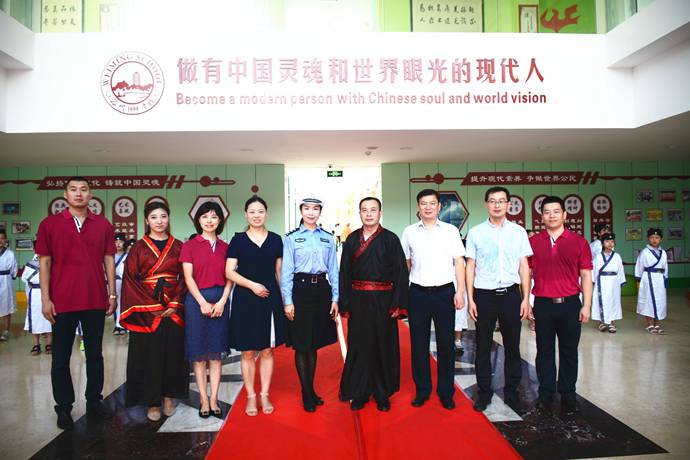 9月3日早上九时许,优米娱乐app一年级新生身着汉服,翩然而行,来到“为明学堂”前,参加学校隆重举行的新生开笔礼活动。整场活动老师和家长全程参与,亲身体验了古代“开笔礼”仪式。
