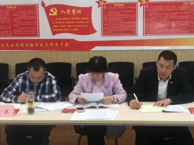 图为光谷为明实验学校黄东书记组织学习《习近平总书记在深入推动长江经济带发展座谈会上的重要讲话》精神以及市委有关精神。