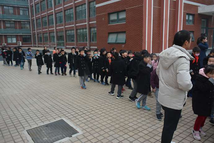 上午第二节课即将结束,安静的校园突然响起了警报声,浓烟四起,老师们迅速到达指定岗位,引导楼内学生快速疏散,各班任课教师迅速带领学生捂住口鼻,弯腰撤离,各楼层引领教师协助安抚学生情绪,指导帮助学生做出正确逃生姿势,沿着指定楼梯口逃生,有序地到达操场安全地带,各班级及时清点人数层层上报,并安排了相关老师到各个楼层进行排查。整个逃生过程用时3分59秒,学生基本能做到下楼梯快速行走,先到先下,无强行冲挤行为,动作迅速,不吵闹,不慌乱。