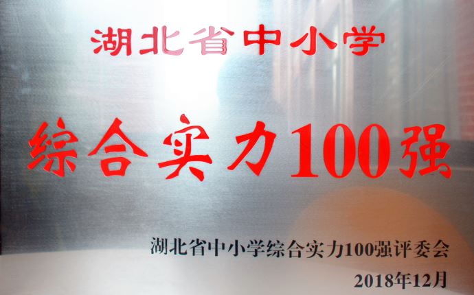 2018年12月,我校经区教文体局推荐,参加了远方教育研究院(原教育名家研究院)和《教育名家》杂志社组织的湖北省“综合办学实力100强”学校评选活动。此次评选专家团队由远方教育研究院、《教育名家》杂志社权威人士组成。入选学校需满足办学规模较大、特色鲜明,学校具有一定的社会影响力和认可力,学校管理校园文化有亮点,现代教育和特长建设突出等条件。我校经过逐级征选、专家初评、展示交流、网上公示、评委会终审等程序的层层评选,最终脱颖而出,喜获湖北省“综合办学实力100强”学校殊荣。