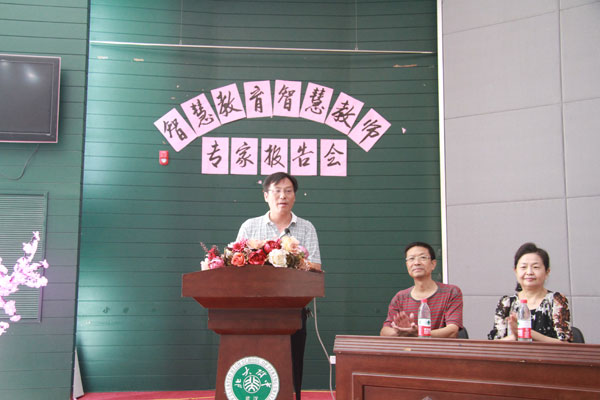 此次培训会以“智慧教育、智慧教师”为主题,会议由刘中文副校长主持,他对各位领导专家的到来表示最热烈的欢迎和诚挚的感谢,感谢大家能在百忙之中来校,为全体教师传经送宝。东西湖区教研室何学斌主任发表讲话,感谢市教育学会对东西湖区教育的厚爱和对北大附中的大力支持。於思副会长向全体教师介绍了在座的专家教师,称他们为武汉市基础教育“泰斗”级的专家教师也不为过。
