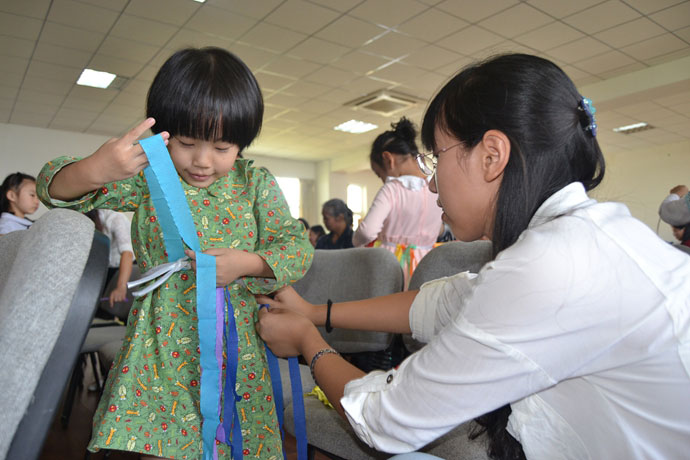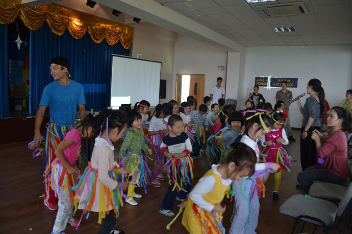 下午13:00,英语主题活动开始举行,活动以学习异国文化为主题,以国家为单位,分别为美国站、英国站、加拿大站、澳大利亚站四组。全部站点活动互有异同,大致有:高年级学生纯英语介绍国家、外教互动游戏、本班学生创意手抄报自荐、知识问答、特色活动等。其中,美国站的特色活动为夏威夷草裙制作,小朋友们自己动手做出漂亮的小草裙,并在石磊老师、杨雅琪老师的指导下学习草裙舞,小朋友们像一个个小精灵般舞动起来,五颜六色的彩带四处飞扬,家长们都被逗得眉开眼笑,乐不可支。