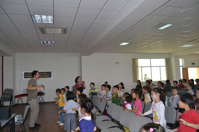 此次开放日主要分为上午常规课堂听课及下午英语主题活动展示两大板块。早上08:00,在清脆的上课铃声中,开放日正式开始,各班教室后面都坐满了期待已久的家长。教室里自然愉悦的课堂气氛、激情昂扬的任课教师、多样丰富的课堂形式,积极活跃的学生表现让家长们满意称赞。第二节课后是体育大课间,有了爸爸妈妈的陪伴,小朋友们今天格外认真,做起操来精神抖擞,之后还有外教互动小游戏,大家在游戏中学习英语,玩得不亦乐乎。