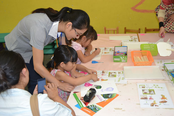 皮影戏素有“一口道定千古诗,双手摆动百万兵”之说,它融合曲调、配乐、故事、表演为一体,在过去电影、电视等等媒体尚未发达的年代,伴随着祖祖辈辈的先人们,度过了许多欢乐的时光。“皮影”作为该戏的“主角”是了解走进皮影戏的首要通道,所以在表演之前,我校组织了一场皮影制作亲子活动,邀请学生、家长亲手制作皮影,现场以年龄分层,针对不同阶段的小朋友分配不同的材料与任务,并在每一桌配备一名教师指导,还搭建了小舞台让孩子们体验表演。现场气氛融洽,不时有小朋友高举自己的作品兴奋得不亦乐乎,大家一起绘画、涂色、剪彩、打孔、捆绑……不仅锻炼了动手能力,了解了民间艺术,更在过程中学习了合作与分享的快乐。