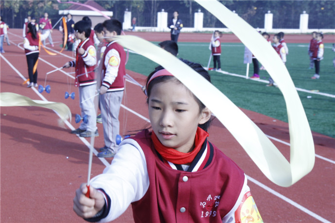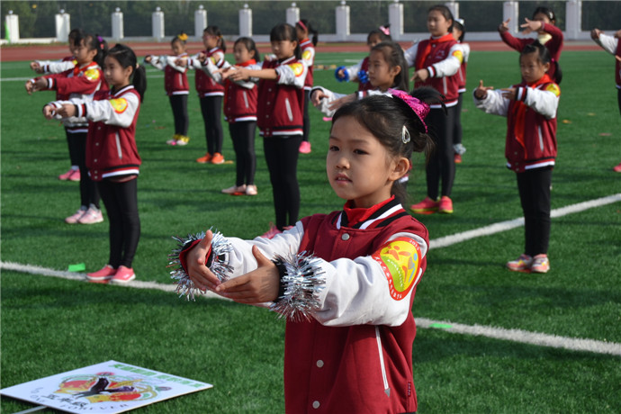 入场式以班级为单位展示,孩子们盛装装扮,精神抖擞,都想将自己最美好的一面展示出来。看!一(1)班的小朋友们手持彩球,跳起动感十足的啦啦操有模有样;一(2)班的节目独具匠心,孩子们头戴“鸡冠”,将《小鸡舞》表演得萌态十足。瞧!高年段的大哥哥大姐姐们群英荟萃,四年级的空竹、彩带表演刚柔并济,五年级的《牛仔很忙》欢快动感。