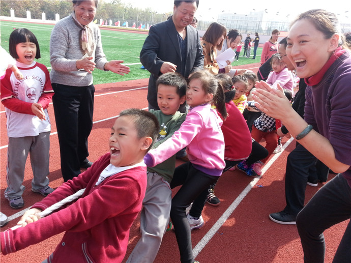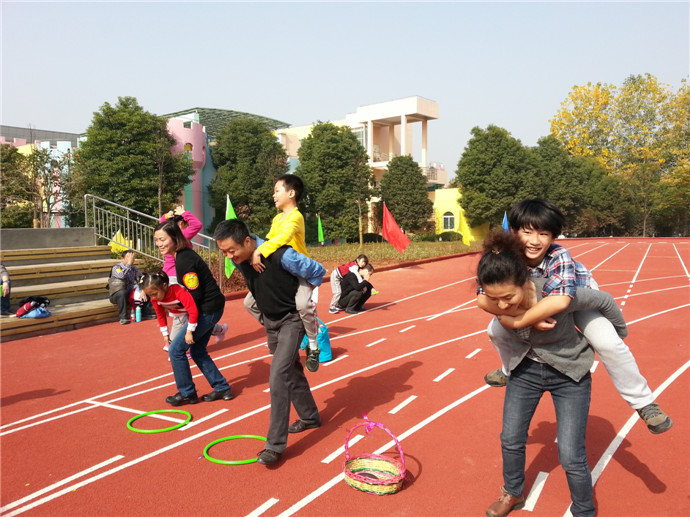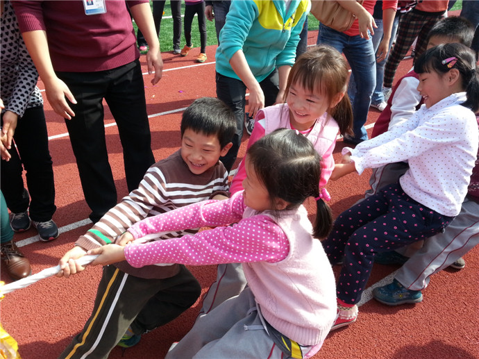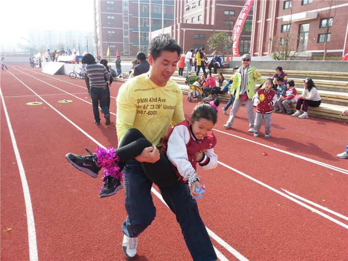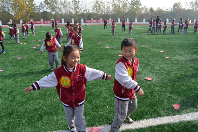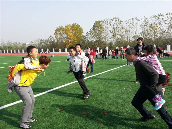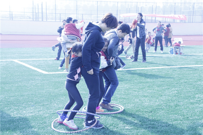 踩气球、揪尾巴、二人三足、亲子跳绳、小猫钓鱼等10项比赛项目一一展开,有趣好玩的亲子运动开始了!平时忙于工作的家长今天敞开了胸怀,一个个都变成了大孩子,快乐地和孩子们一起玩,一起跑,一起欢乐!享受着天伦之乐!亲子运动会增进了亲情交流,增进了家长之间、家校之间的友谊!比赛中,家长和孩子密切配合,一起奔跑,一起冲刺!为摔倒、落后的孩子们加油,和孩子一起完成比赛,操场成了一片欢乐的海洋。
