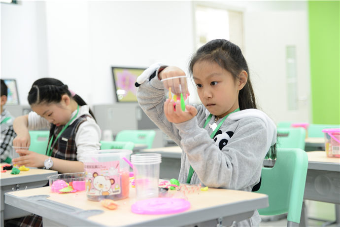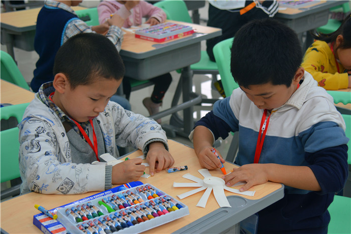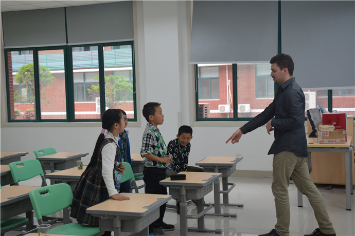 在各科课堂上,学生积极性颇高,师生互动良好。美术课上的纸杯花绚丽多彩,充满想象;家政课的自制小蛋糕别具一格,奇趣多多;书法课挥洒的是中国精粹,培养的是宁静淡泊的心境;陶艺课的“奇幻海底世界”让小手、小脑齐开动,孩子们念念不舍;科学课的小小降落伞让学生们在动手实践中了解物与力的奇妙;最值得一提的是和外教一起律动的大课间,一个手势、几个眼神,孩子们就能迅速的与外教互相呼应、互动自如,在蓝天白云下、宽阔的大操场中、动静皆宜的音乐声里共同起舞,银铃般的欢笑声充满校园。