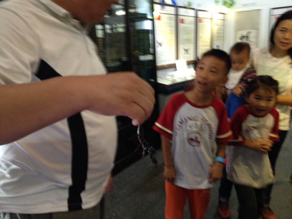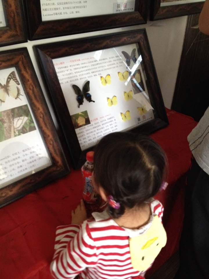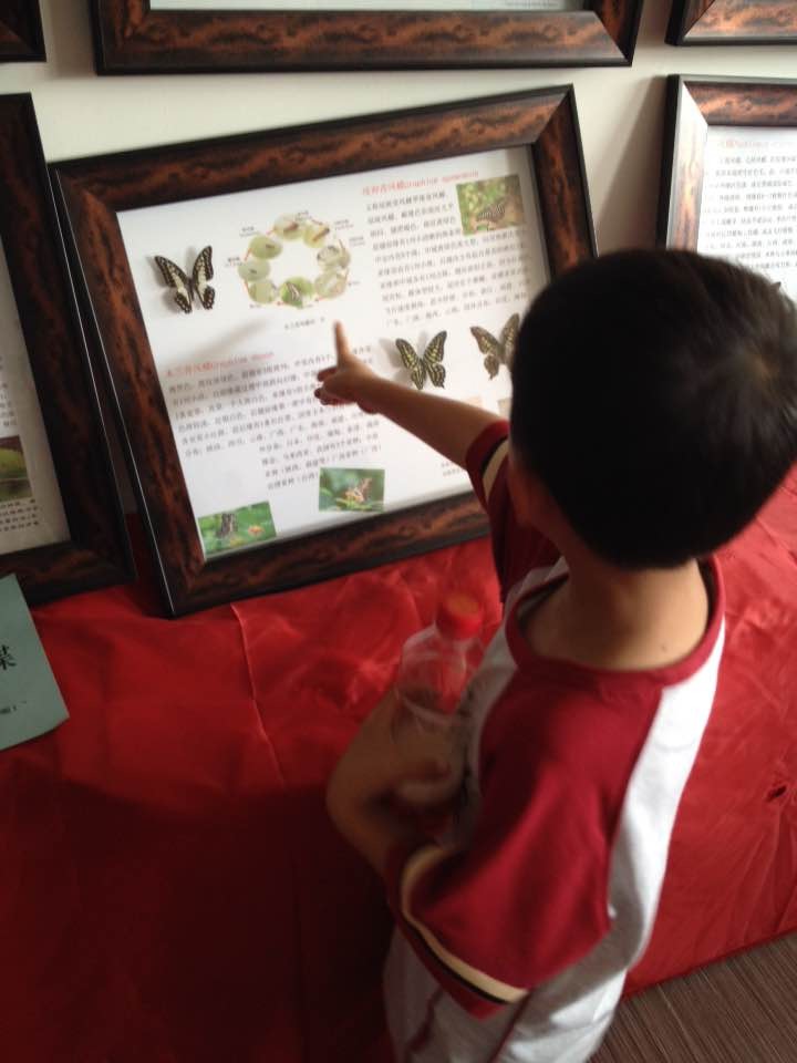 而最让人期待的是去昆虫馆观察昆虫了。昆虫馆离捕捉昆虫的地方很遥远。下了车,走过一段宁静的小路,才发现这里藏着一个宝贵的昆虫宝库。馆长从小喜欢昆虫,用了30年的心血,走遍世界各地,搜集回了各种特别的蝴蝶,还有自己亲自培养的各种蝴蝶。没有一分执着,没有对梦想的坚持,我们是见不到这么多种蝴蝶的。孩子们纷纷叫自己的爸爸妈妈赶紧拍下这些少见的蝴蝶,赞叹中对了一些对蝴蝶的了解,赞叹中更多了几份对馆长的敬佩。而孩子们,还亲自体验制作昆虫标本,拿着自己的杰作满意而归。