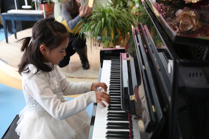 (图为:聂千淇同学认真演奏)