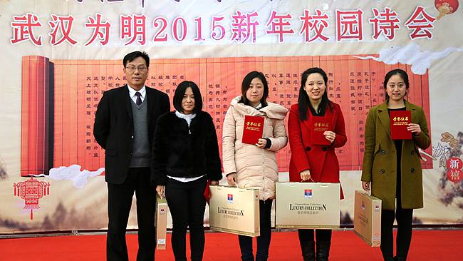 下午1:30,会议进入“诗意中寻找教育真谛——武汉为明2015校园迎新诗会”主题。两个校区的校领导和老师们,按照《为明颂》、《祖国颂》、《青春颂》、《明天颂》四个篇章,分别运用“古体诗”、“现代诗”、“情景剧”等不同的诗歌朗诵表现形式,呈现出为明教师对教育的理解,表达出大家对教育的执着和坚韧。精彩纷呈,含金量极高的校园诗会,更是契合了周恩芝校长提出的2015文化建设年的主题基调,全员读书、学习、交流,用教师整体素养的提高,来驱动和适应教育改革发展的新常态。