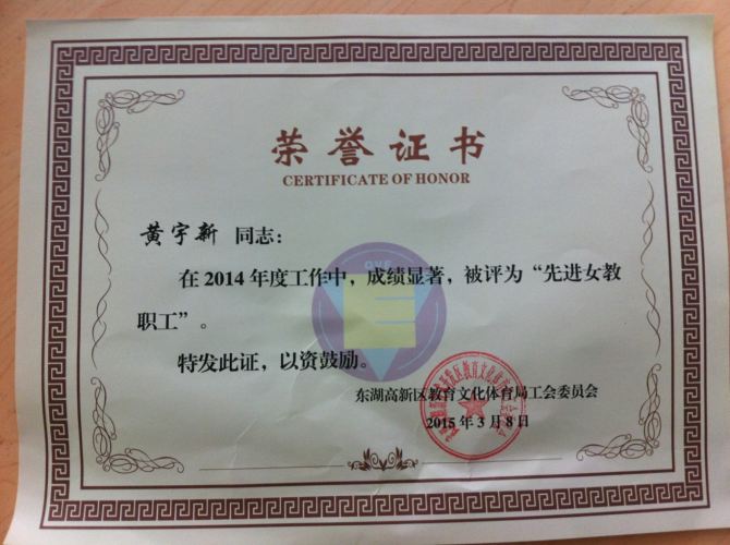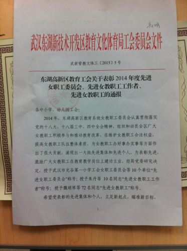 3月8日,东湖新技术开发区“先进女教职工”表彰名单揭晓,我校一年级一班语文教师黄宇新榜上有名。
