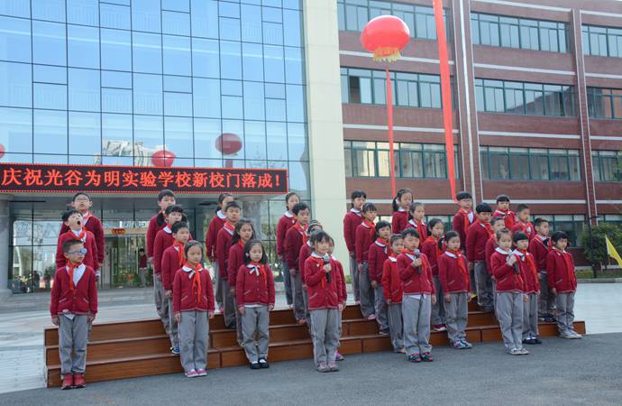 之后,我们迎来了二(1)班同学们天籁般的诗朗诵:“蓝天与白云牵手,点燃了我们心中激扬的情和难忘的歌。梦幻的童年流淌着缤纷的花雨,每个人都想拥有一块属于自己的天地。你看,那宽敞明亮的教室、那绿草如荫的运动场,那美丽的光谷为明学校,正是我们梦想起航的地方……”。