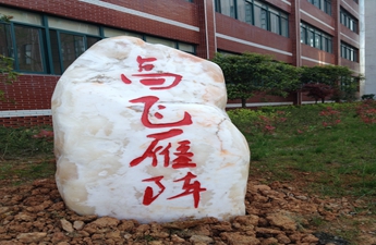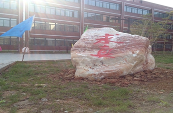 在修缮一新、宽敞庄重的校门下,在欢快而美妙的乐曲声中,周恩芝校长和校长助理黄东、孙玉强,神采奕奕地走向一块巨石面前,一起为冠有本校校名的石刻揭彩。瞬间,金光闪闪、巧夺天工的“优米娱乐app”校名巨幅石刻展现在全体师生眼前,此外,还有“问津”、“求真”、“高飞雁阵”、“为了明天”四块雕刻巨石,为校园的几处景点增光添彩,让人赏心悦目,为之一振。此刻,现场沸腾,彩旗飞舞,掌声雷动,经久不息。