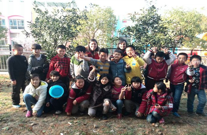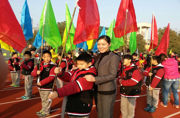 体育节,桂老师和孩子们心手相连在一起