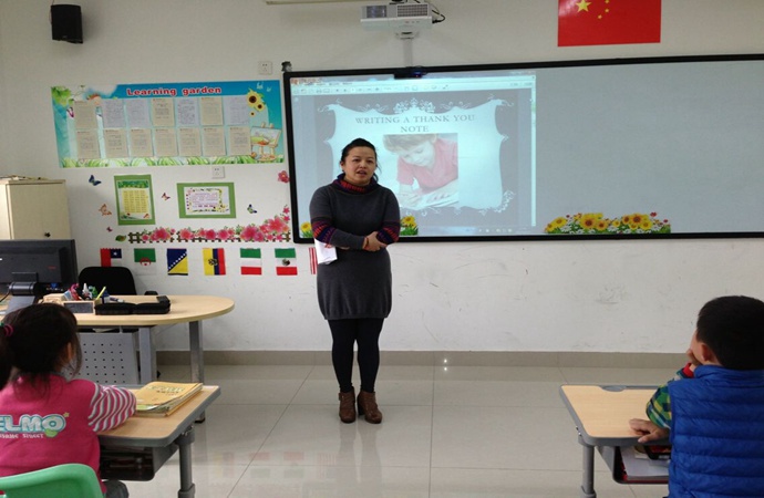 三(2)班的李锦云妈妈,是海归人士,有新加坡和美国的生活经历,立足于国际班的建设,联系四月德育主题,讲了一节《国际化的交往与礼仪》,流利的英语表达,较好的亲和力,深受同学们喜爱。在轻松愉快的情境中,孩子们懂得了许多国际礼仪常识。