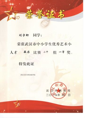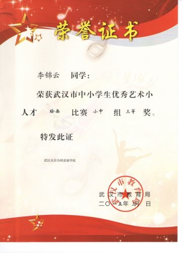为了广泛开展学生艺术活动,普及艺术教育,展示艺术水平,培养、选拔优秀艺术人才。我校坚持让每个学生都能获得全面而充分发展、创造适合学生能接受的教育、创造有国际竞争力的教育、创造促进学生可持续发展的教育。以三维多元化的课程平台,培养多元化高素质的人才。我校从去年10月起积极参加东湖高新技术开发区艺术小人才比赛,经过区级选拔我校有四名同学参加了3月21日举办的武汉市中小学生优秀艺术小人才比赛。此次比赛得到了家长的高度支持与认可,积极配合学校做好赛前工作,最终参赛同学经过紧张激烈的角逐和评委的认真评选,取得了优异成绩。