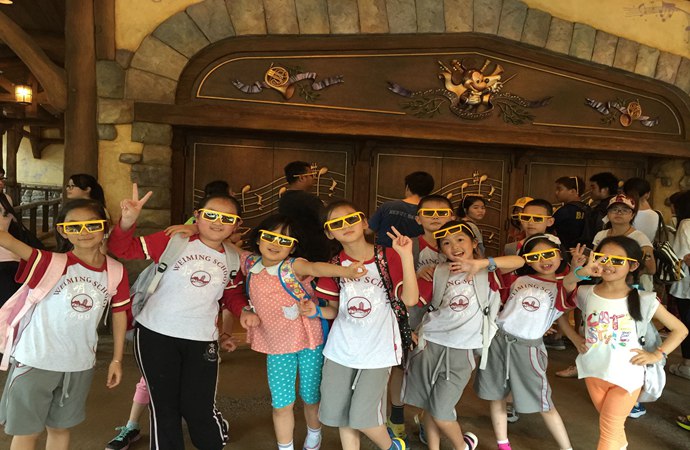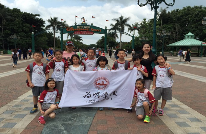 迪士尼乐园是以卡通故事为蓝本的大型主题公园。能和自己喜欢的卡通人物在英语情境下相会 ,那是多么的让孩子们激动啊!5月6日,国三(2)班香港游学10人畅游了他们梦寐以求的香港迪士尼乐园。