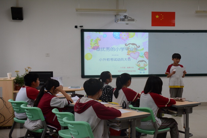 在六年级全体同学的器乐合奏《红蜻蜓》音乐声中,小升初动员大会正式拉开帷幕。首先,在《怒放的生命》的旋律中,我们一起通过视频短片回顾了同学们小学六年来学习生活的精彩瞬间和获奖经历。