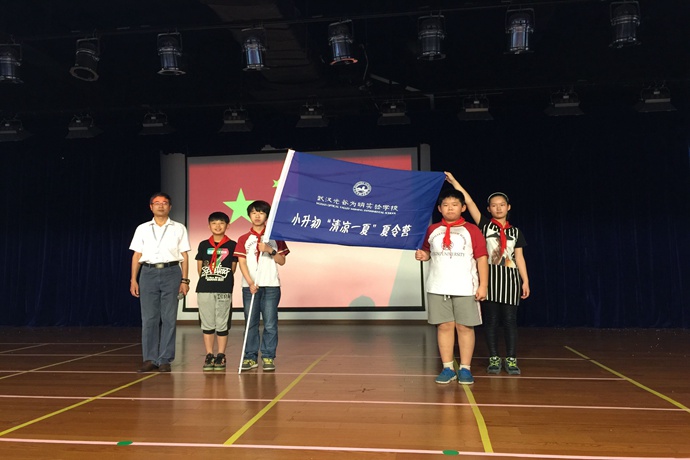 6月15日上午八时,在庄严的升旗仪式后,孙校长首肯了六年级同学前段时间的辛苦付出,并热情洋溢地宣布小升初“清凉一夏”夏令营体验活动正式开营,并将营旗授予小升初学生代表。本次夏令营活动以我校特色课程为主,让学生能提前感知我校初中生活。