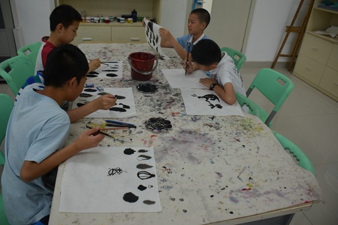 摆在教学楼前的手绘宫廷扇、彩绘油纸伞、艺术衫、马勺脸谱和名画重现带给我们的艺术上的震撼还依旧那么强烈,让人回味悠长。此次夏令营依然将艺术之风进行到底。水墨画被视为中国传统绘画,也就是国画的代表,而荷花更是中国传统文化中君子的象征:“出淤泥而不染,濯清涟而不妖”。老师教同学们如何执笔、调墨,如何勾画出荷花花苞,大家练得是不亦乐乎。