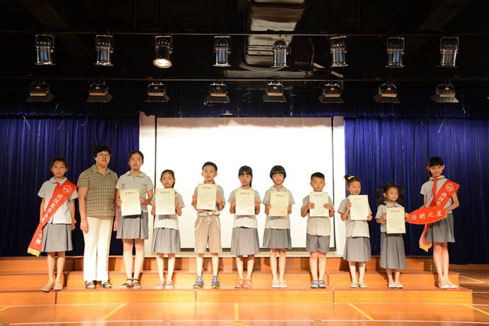 在颁奖的过程中穿插了国学经典诵读展示。学习圣贤,传承美德,弘扬文化,力行经典,本学期我校继续深入开展经典诵读活动,每天早上都能听到同学们的琅琅书声。在舞台上,各年级同学分别展示了在校本教材《国学读本》中的收获。伴着对大家浓浓的祝福,伴着依依惜别的情谊,在校歌《为了明天》的演唱中,散学典礼结束。