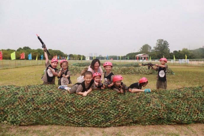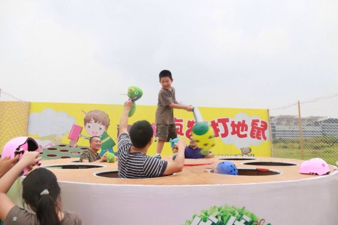 从第二个环节开始,孩子们就被分成两组同时进行后面的游戏了。游戏项目可真多——挖掘机,推水磨,沙滩小人国,开心泡泡球,消灭小怪兽,疯狂打地鼠……大家很快进入了状态,开始玩起了cs,两派人马在掩体后面噼里啪啦的互相扫射,现场只见密集的子弹在空中交错;玩真人版桌面足球的时候,可能是场面太热烈,吸引了老师和几位家长加入,其实最后的结果已经不重要了,因为这个过程已经足够快乐!