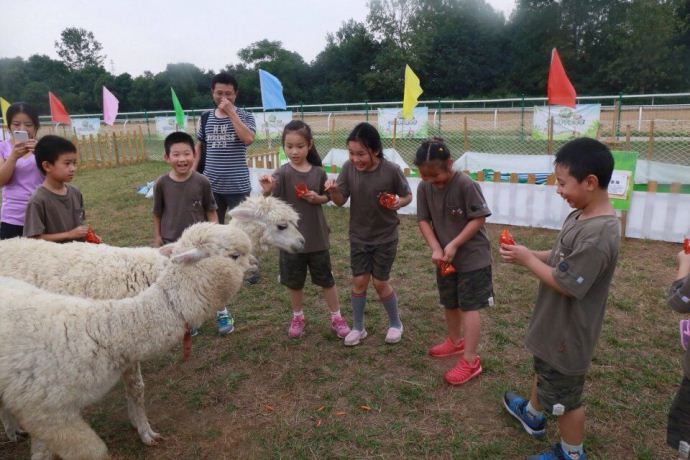 其实,比起射箭,愤怒的小鸟,走迷宫,孩子们最喜欢的就是打地鼠和给羊驼喂食了!一起来的爸爸们有几个算几个,全部体验了一把当地鼠被打的感觉,看着爸爸们的脑袋此起彼伏,看着孩子们开心地挥锤敲打,围观的妈妈们都被逗笑了,我们班的爸爸就是这么可爱!有几位漂亮妈妈甚至学起了调皮的地鼠,呵呵,你们看像不像啊? 呆萌的羊驼一点也不怕人,憨态可掬,有几只追孩子们手里的胡萝卜还追出了圈外,孩子们由开始的惊叫,慢慢变成了小心地抚摸,走的时候孩子们都把剩下的胡萝卜洒在地上让羊驼吃,人与自然就这样慢慢靠近……