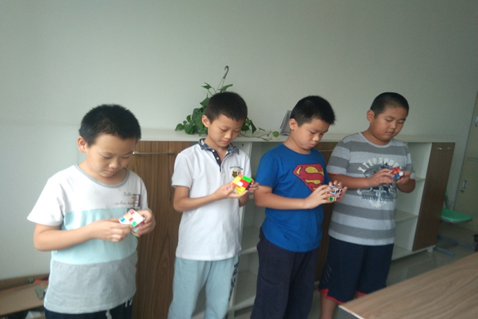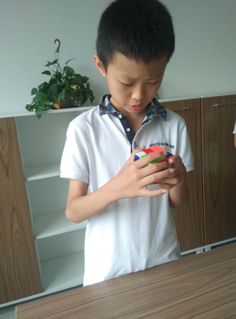 活动中各班学生表现的都很积极,大家踊跃报名。课后各班魔方爱好者经常会在一起研究魔方教程、互相传授经验,校园里掀起了一股魔方的热潮。9月底各班高手进行了最后的对决,比赛中选手们手脑并用,双手飞速旋转着魔方,令人眼花缭乱。经过了逐轮的比赛,最后五年级吴尚伟同学六面复原以27秒的成绩成功夺冠,成为了本届“玩转魔方”活动的魔方达人。