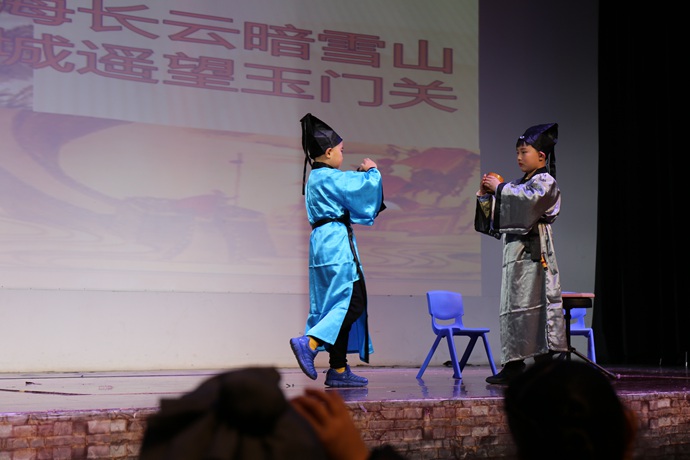 进入总决赛的学生,根据抽签决定参赛内容,各班同学和老师纷纷加入助阵,精心排练:或读或诵,节奏鲜明;或歌或舞,韵味十足。既体现了传统文化的韵味,又展现了为明学子的风采。