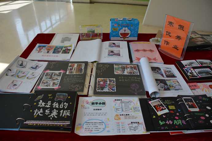 新学期开始,伴随着春天的脚步,同学们又朝气蓬勃、神采奕奕的回到了生机盎然、洒满阳光的校园。在收到用红丝带系住的课本作为开学礼物的同时,同学们也纷纷上交自己的假期小作品——特色寒假作业。老师们在放假前,要求孩子们将假期中与家人欢乐出行、与长辈同包饺子、与同学畅游书城等美好瞬间用相机拍下来,用彩笔画下来,用语言表达出来,粘贴、书写在日记本上,开学和老师同学们一起分享,给自己的童年永远留下美好的回忆。同学们也都认真的按照老师的要求,每本上交的作业都经过精心的描绘,工整的字迹,多彩的图画,每本作业都是一件小小的艺术品。