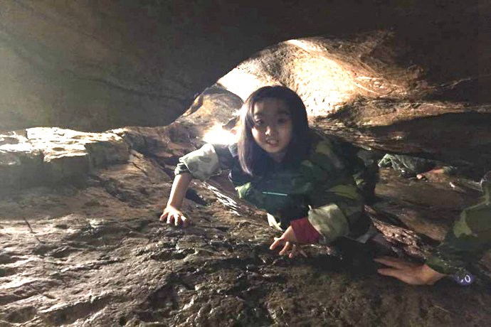 重新站起来不过几米,忽然眼前一亮,终于到达了出口。出得洞来,树木葱茏,山鸟鸣啾。孩子们无一不是狼狈不堪的模样,头发、衣服、双脚汗涔涔、湿淋淋、脏兮兮。孩子们跳跃着身姿,都说玩得不够尽兴,平时最爱干净的刘芳琪不顾满身泥泞,大喊着“太好玩了,我下次还要再来”。孩子们探险的过程中,表现得非常出色,听从教练指挥,逐渐克服了心里的恐惧,在探险过程中相互鼓励,友情相助,勇敢地完成了一关又一关的艰难挑战。回想此番探险惊险刺激、苦中有乐、乐中有险,回味无穷。