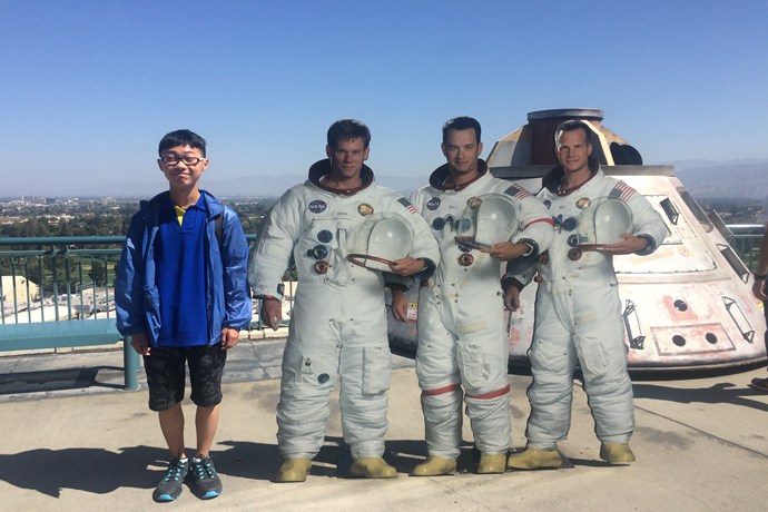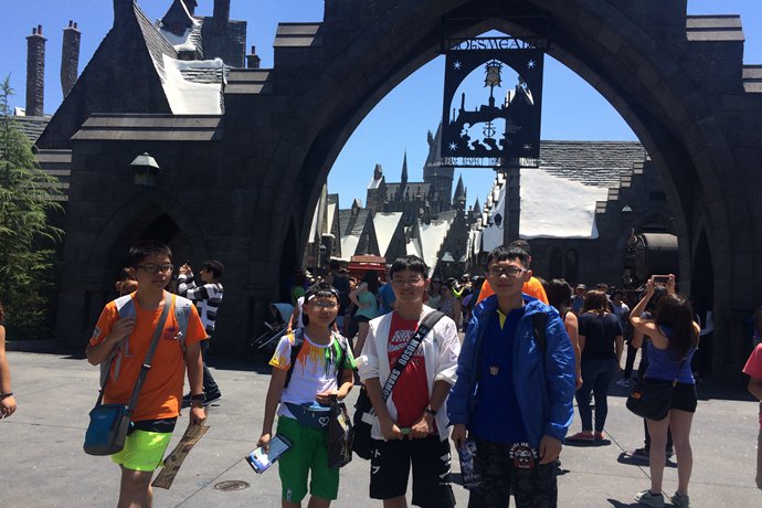 (周玄翎、吴俊宏和曾瑞东在哈利波特魔幻天地合影留念)