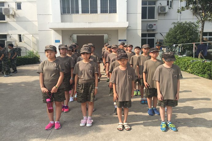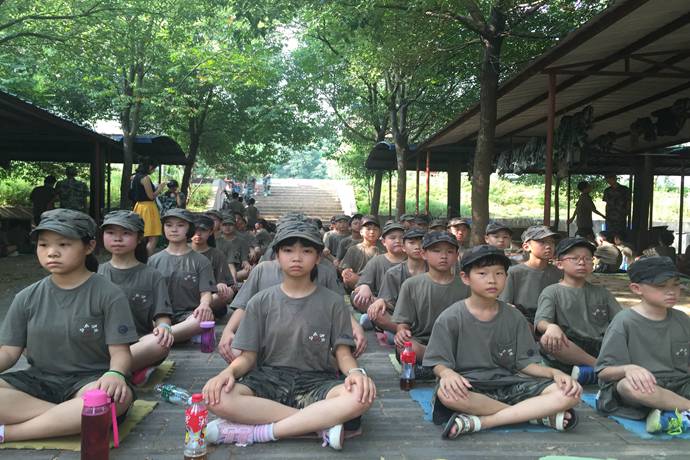 正式的户外训练在下午四点开始,阳光依然炙热,平时娇惯的孩子头顶太阳站立军姿,汗水顺着脸颊流淌,他们默默承受,一声不吭。