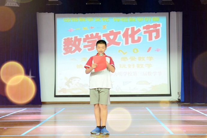 两名小主持人详细介绍了第三届数学文化节的活动内容、意义。本届数学文化节以“快乐数学,智慧同行”为主题,以宣扬数学文化、展示数学魅力、提升学生综合素质为主要目的来积极开展各类文化活动。