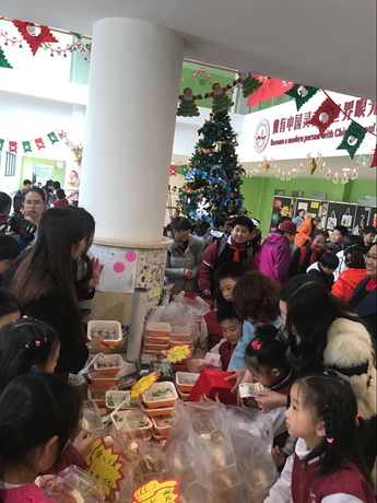 英语节闭幕晚会后,助力“免费午餐”爱心义卖会正式开始。全校学生热情响应,纷纷慷慨地拿出自己积攒的零花钱购买自己喜欢的物品,现场人头攒动,场面火爆。看着那么多张纯真的笑脸,我们心中不由流过一股股暖流。因为他们捧着的,绝不仅仅是件普通的物品,食品,一颗颗温暖的心!