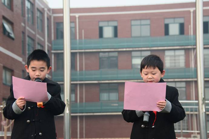 接着由国际一(1)班全体同学带来精彩的表演《读书的孩子最可爱》。