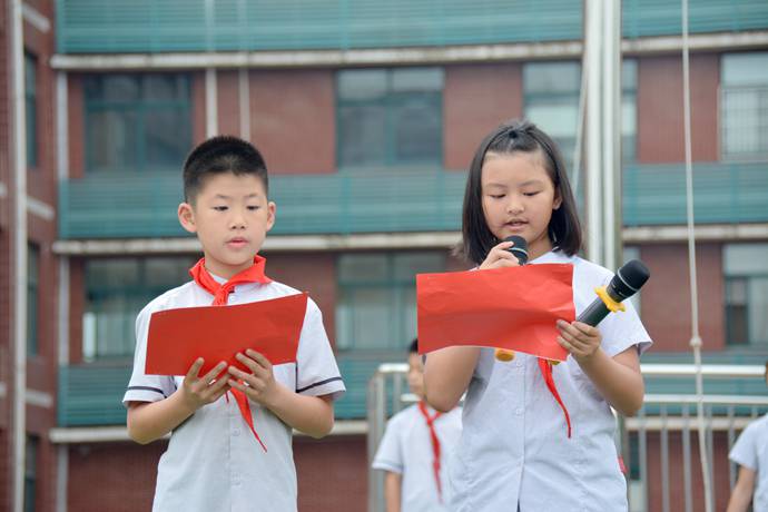 担任本周升旗仪式班级是优质五一班 ,升旗手是舒瑾枫、鲍韵希,护旗手是张腾玥、李志煌、饶胡逸、潘宇彤,主持人是沈晨颖、胡珂语同学。