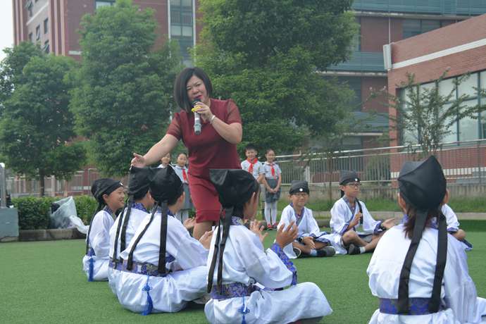 值周教师金晶老师对上周德育常规进行小结,由三—六年级年级组长刘亚琼老师为获得为明之星的班级颁奖。一年级组:优一(1)、优一(5);二年级组:二(1)、二(2);三到六年级组:国三(1)、四(2)、六(1);初中部:九(1)。