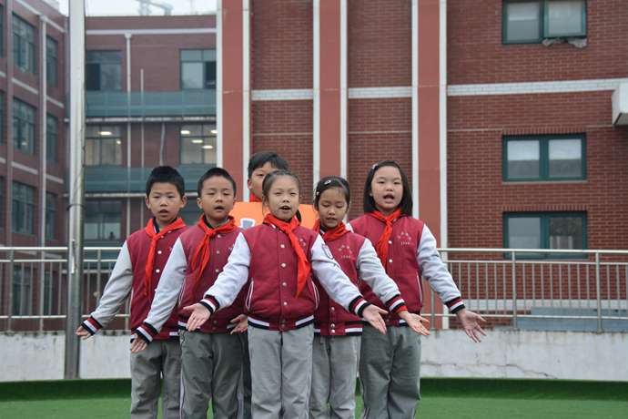 接着由三(2)班的同学全体同学作国旗下表演,他们带来的是配乐诗歌朗诵《宽容》。