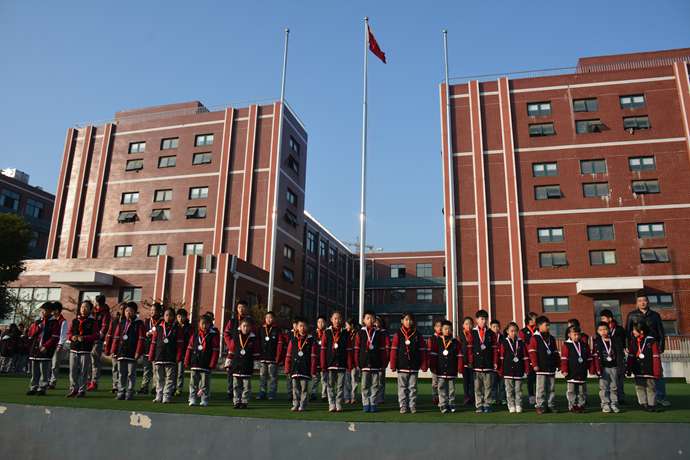 本周升旗仪式还对第四届达标运动会上获得单项奖的同学颁发了奖牌。