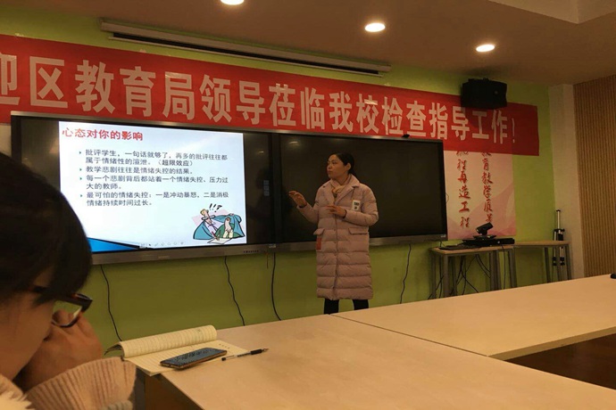 2018年1月8日下午,光谷为明实验学校在二楼会议室针对班主任举办了一场“塑造阳光心态,享受完满人生”的专题培训会。本次会议由学校心育辅导教师桂丹老师主讲。