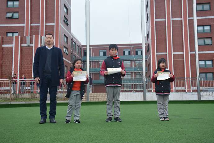 由值周教师陈龙老师对上周德育常规进行小结,由小学部德育处李春龙主任为获得为明之星的班级颁奖。他们分别是:国一(1)、优一(1)、国二(3)、优二(2)、优三(3)、优四(1)、优五(2)、国六(1)、八(1)班。