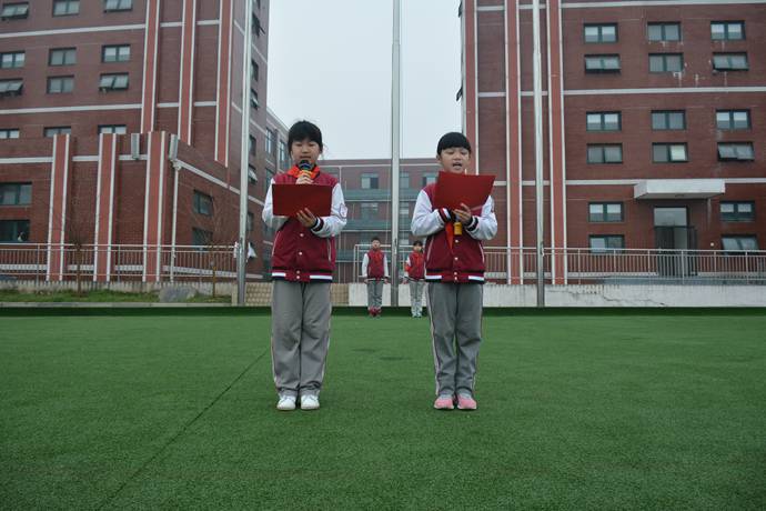 担任本周升旗仪式的是大队部,升旗手是梁言、印芷萱 ,护旗手是刘久源、祁子傲、汪雨珊、廖诗宸 ,主持人是林木木、曾子瑜同学。