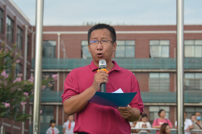 升旗过后,由优质五(2)班班主任严红平老师做国旗下演讲:《勿忘国耻,振兴中华》。他告诉同学们:面对美好而又幸福的生活,我们应该“饮水思源”, 为了祖国辉煌壮丽的未来,做高山的攀登者,去饱览险峰的雄姿;做浪尖的弄潮者,去领略大海的气魄;做时代音符的弹奏者,去奏响祖国激昂时代的最强音!
